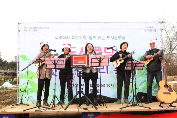 6일 강동구 상일텃밭(상일동 12번지)에서 올 한해 텃밭 활동을 마무리하는 ‘텃밭 갈무리 축제’가 개최됐다. 사진은 한해 텃밭농사를 갈무리하는 ‘우쿨렐레 공연’ 모습. (사진제공=강동구청)