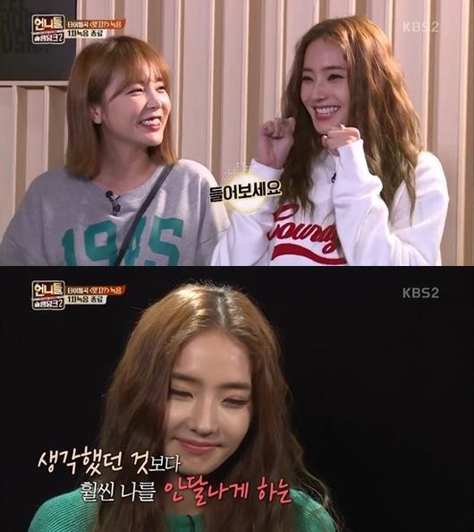 과거 방송된 KBS2 예능프로그램 ‘언니들의 슬램덩크2’에서는 한채영이 홍진영에게 애교 특훈을 받는 모습이 그려졌다.