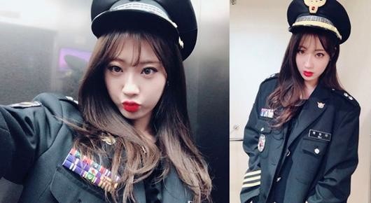 큰 사이즈의 옷과 모자에 작은 얼굴과 날씬한 몸매가 강조된다. 누리꾼들은 경리의 경찰 제복 몸매에 감탄을 아끼지 않고 있다.