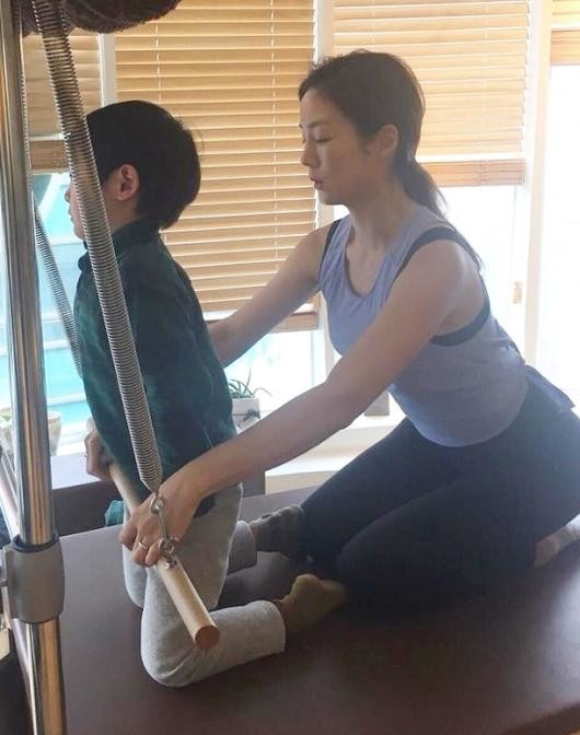 공개된 사진 속에는 문정원이 두 아들을 데리고 필라테스 운동을 하고 있는 모습이 담겨 있다. 둥이는 엄마를 따라 열심히 운동을 하고, 엄마를 도와주기도. 기특한 마음이 대견하다.