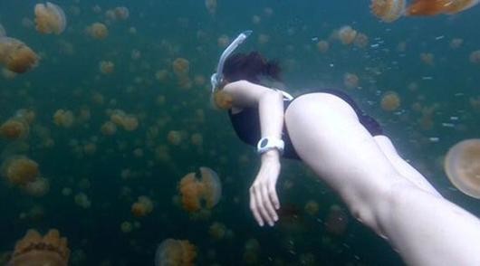 윤세아는 과거 자신의 트위터에 "'젤리피쉬 레이크' 안녕...정글!"이란 글과 함께 사진을 올렸다. 사진 속 윤세아는 무수히 많은 해파리 사이에서 수영해 보는 이들의 눈길을 사로잡았다.