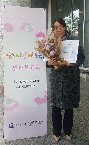 김해시 시간제 보육 사업에 공로를 인정받은 김유미 담당 직원이 “2018년 시간제보육사업 성과보고회”에서 보건복지부 장관상을 수상했다.