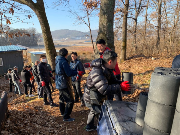 경기 김포시시설관리공단과 노동조합은 최근 임직원의 자발적 참여를 통해 모은 우수리 모금액으로 구입한 연탄과 세제, 쌀, 휴지 등의 생필품을 지역내 저소득 가구에 전달했다. 사진은 참여자들이 연탄을 배달하고 있는 모습. (사진제공=김포시시설관리공단)
