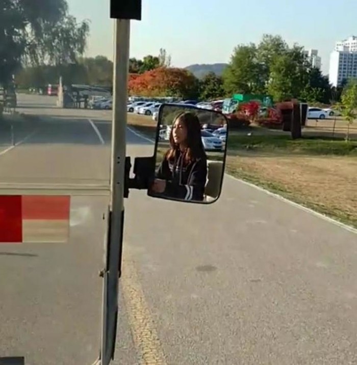 공개된 영상 속 그는 지아가 직업체험으로 운전하는 모습을 촬영하고 있다.