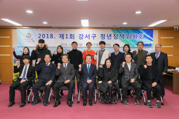 강서구는 10일 구청 본관 3층 대회의실에서 청년들의 사회참여를 확대하고 다양한 의견을 구정에 반영하기 위해 구성된 ‘청년정책위원회’의 위촉식을 진행했다. 사진은 노현송 구청장(앞줄 가운데)과 위원들이 기념촬영을 하는 모습. (사진제공=강서구청)