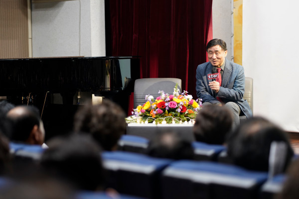 인천 연수구노인복지관은 최근 200여명의 노인들이 참여한 가운데 제4회 라디오스타 공개방송 '아듀, 2018'을 진행했다. 사진은 이날 방송에 참여한 고남석 구청장이 연수구의 2019년 목표와 추진계획에 대해 설명하는 모습. (사진제공=연수구청)