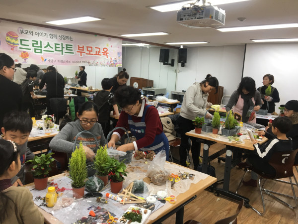인천 계양구 드림스타트는 최근 드림가족 중 부모교육을 희망한 7가구 17명을 대상으로 '크리스마스 토피어리 만들기' 강의를 진행했다. 사진은 행사 참여자들이 토피어리를 만들고 있는 모습. (사진제공=계양구청)