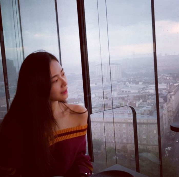 홍수현은 자신의 인스타그램에 "안녕히가십쇼#여름"이라는 문장과 함께 사진을 공개했다. 사진속 홍수현은 아찔한 오프숄더를 입은 채 창밖을 바라보고 있었다.