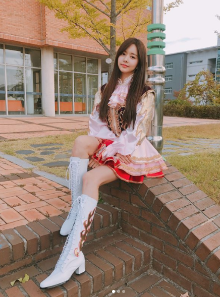 사진 속 한보름은 치어리더 복장을 하고 늘씬한 각선미로 인형몸매를 과시하고 있다. 긴 생머리에 청순한 표정도 보는 이들의 시선을 사로잡는다.
