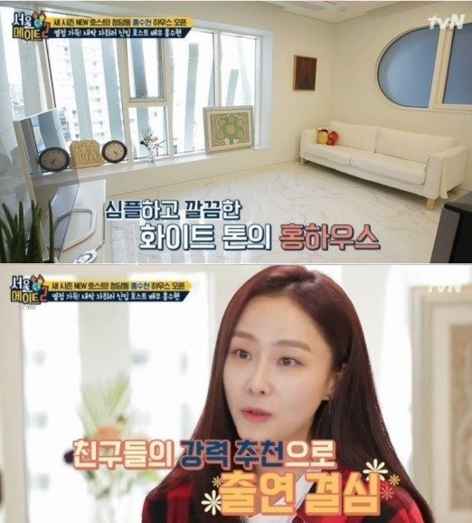 한편 홍수현은 '서울메이트2'의 새로운 호스트로 출연해 일정기간 집에 머무를 메이트들을 위해 세심하게 침구를 정리하는 모습을 보여주였다.