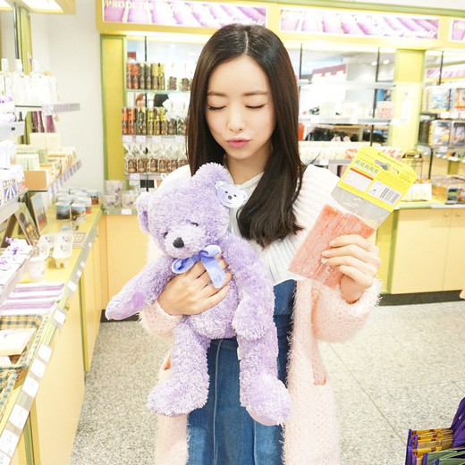 공개된 사진 속에는 곰돌이 인형과 과자를 손에 들고 있는 홍수아의 모습이 담겨있다. 그녀는 입술을 살짝 내민 애교 가득한 표정을 연출해 시선을 끌었다.