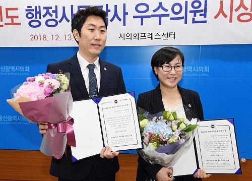 울산시의회 김미형, 김종섭 의원이 시의회 출입기자단의 올해의 행정사무감사 우수의원으로 선정됐다.