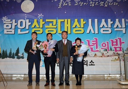 한편, 이날 함안상공회의소는 지역상공업 발전과 지역봉사에 헌신해 온 경영인과 근로자의 사기진작과 자긍심 고취를 위해 경영대상에 ㈜신라이노텍 김연이 대표, ㈜노루페인트 진명호 대표, 신한산업(주) 김쾌용 대표를 각각 선정하고 시상했다.