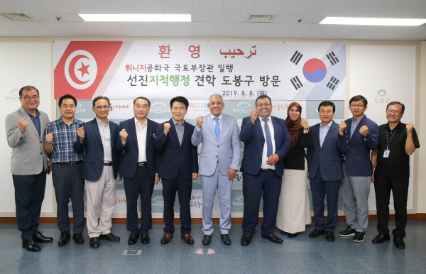 최근 도봉구에 튀니지공화국 국토개발부 장관 등의 일행이 부동산종합공부시스템 등을 벤치마킹하기 위해 방문했다. 이날 방문단은 부동산종합공부 시스템 활용 현황 등에 대한 설명을 들었다. 사진은 방문단과 구 관계자들이 기념촬영을 하는 모습. (사진제공=도봉구청)